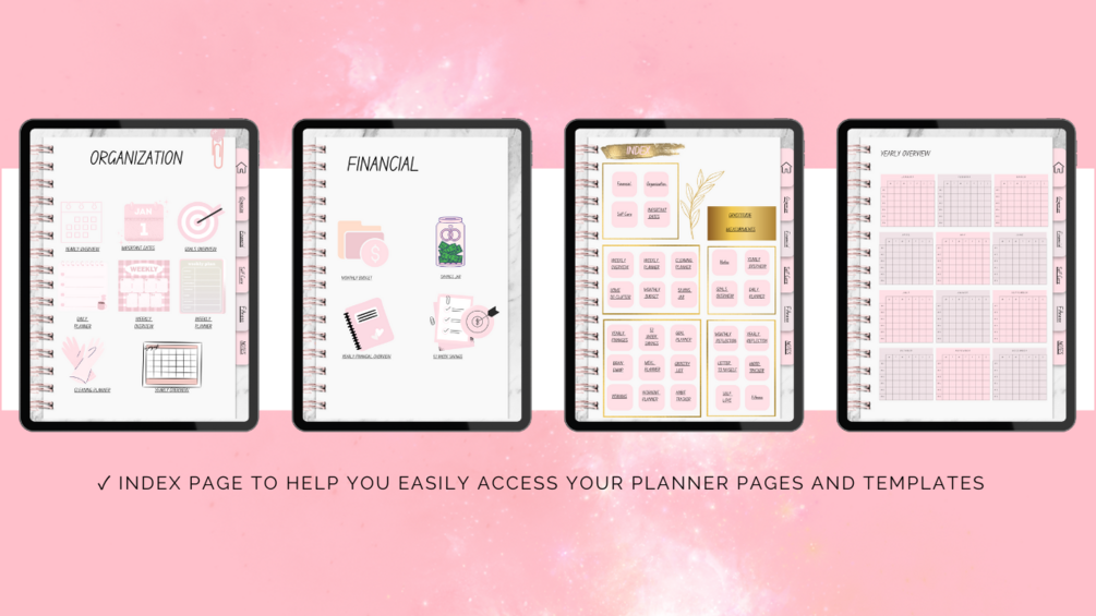 π Index: Easily navigate through your digital planner with a user-friendly index.